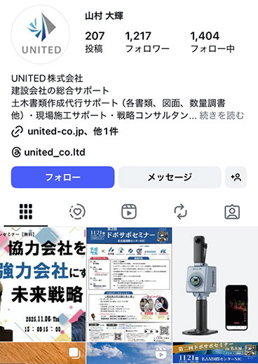 ユナイテッド様は、SNSを積極的に活用し、日々の現場の様子や会社の取り組みを発信されています。